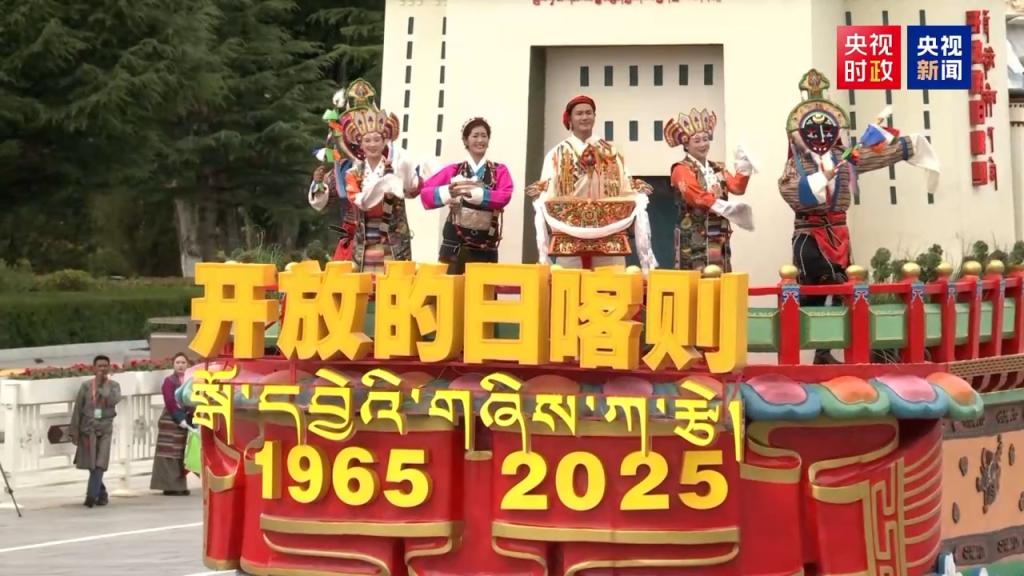 今年1月,日喀则市定日县发生6.8级地震。一方有难、八方支援,党的关怀暖人心,受灾群众很快搬进了新居。表演者们迈着雄浑壮阔的甲谐舞步,在传统鼓点与悠扬音乐中,展现出日喀则各族干部群众团结拼搏、积极向上的精神风貌,为西藏自治区成立60周年盛典献上一份来自珠峰脚下深情的礼赞。